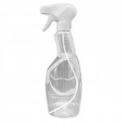 | Clear 750 ml plastic bottle with white spray nozzle. Dosage 0.8 - 0.9 ml per press. The spray nozzle has a rotating locking system. Bottle dimensions including sprayer: height 280 mm, width 90 mm, depth 60 mm. Use for cleaners, drugstore items, cosmetics, disinfectants, various sprays, etc. |